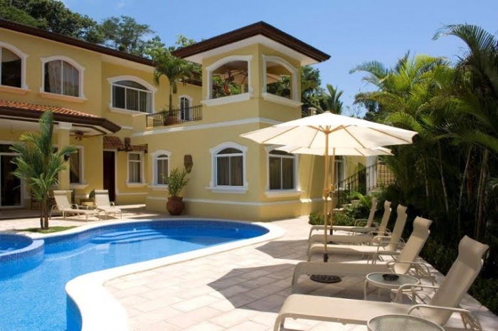 This deluxe luxury vacation rental of Jaco Beach Costa Rica is located in the exclusive Los Suenos resort community. One of the most popular and impressive Costa Rica vacation resorts, Los Suenos houses many exotic properties, including this fantastic Jaco luxury rental villa. With has 8 spacious bedrooms with 10 full bathrooms and 1 half bathroom, this immaculate beach rental can easily accommodate a full family or a group of up to 18 people. With so much space and such an ideal location, this gorgeous vacation rental property in Jaco is the perfect place for your next family reunion, destination wedding, or romantic getaway in Costa Rica.