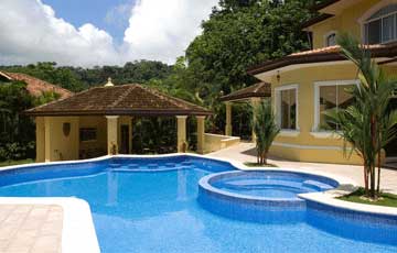 When not cooling off in the fully air conditioned villa, take a step out into paradise on the private patio under the warm, golden Costa Rican sun and take a dip in the private swimming pool. The tropical private pool features an exotic swim up “Tiki†style bar with under water bar stools, Jacuzzi, and 60†plasma TV. The private patio area offers plenty of lounge chairs to relax and sunbathe, and also features a BBQ grill to maximize this incredible space and give more reasons to relax outdoors and enjoy the beautiful Costa Rica weather.
