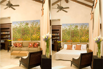 Bright, vibrant artwork adorns the walls of this lavish Jaco vacation rental