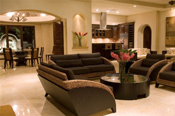Plush lounge seating in deluxe Jaco rental